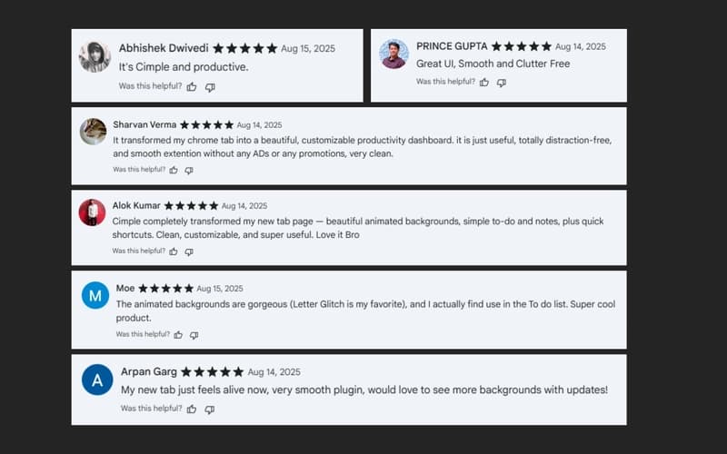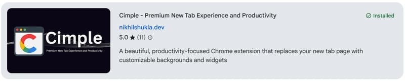 When I first started building Chrome extensions, it was mostly about solving small personal annoyances. Over time, I realized that many of these little problems weren’t just mine—other people were struggling with them too. That realization led me to build Cimple – Premium New Tab Experience, a Chrome extension designed to replace the default new tab page with something clean, useful, and minimal.